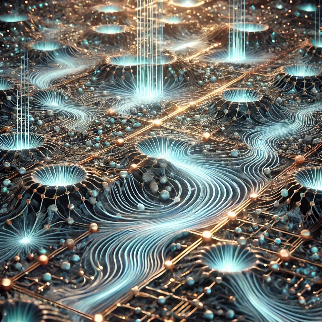 The speculative core of NFT is a computation model where logic gates are not hard-coded, but arise transiently through electric microfield interactions across a morphoelectric lattice. Instead of pre-defined pathways, signals would “self-lay” channels through an adaptive surface, like raindrops carving rivers on sand. The field shapes the computation, and the computation reshapes the field.