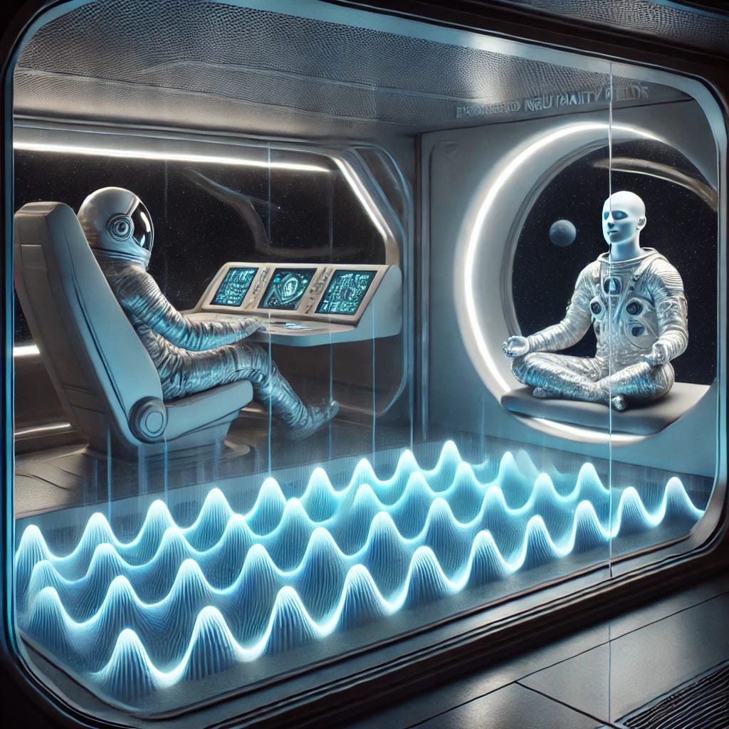 Moreover, long-duration spaceflight, which poses risks due to sensory monotony and emotional instability, might benefit from engineered neutrality fields, non-invasive EM or light environments that subtly reinforce cognitive quietude without inducing sedation.
